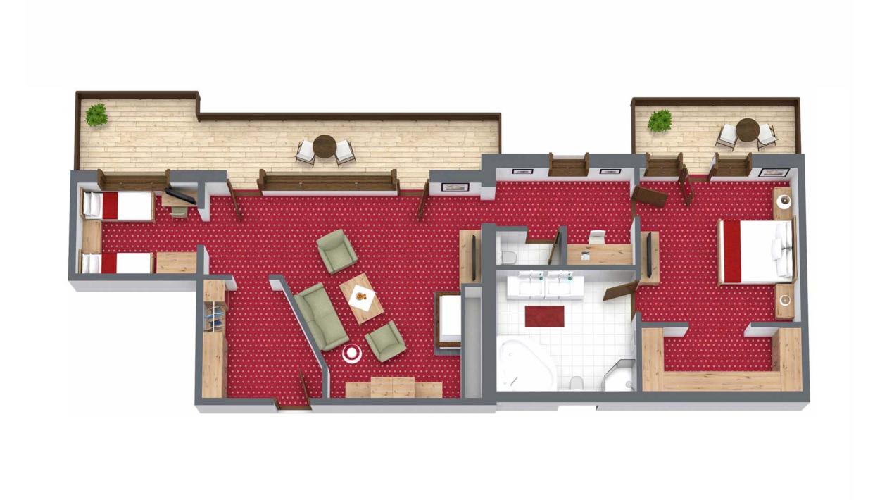 Due camere da letto separate, soggiorno, bagno e doccia, doppio lavabo, WC separato, balcone, radio, TV satellitare, Wi-Fi, telefono, specchio, asciugacapelli, cassaforte e minibar
