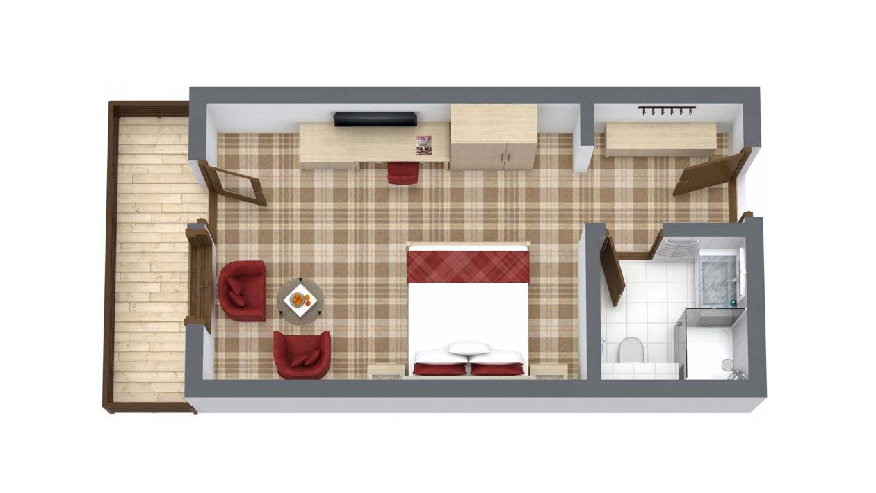 Doppelzimmer mit Dusche/WC, Sitzecke, Balkon, Radio, Sat-TV, WLAN, Telefon, Föhn, Zimmersafe und Minibar