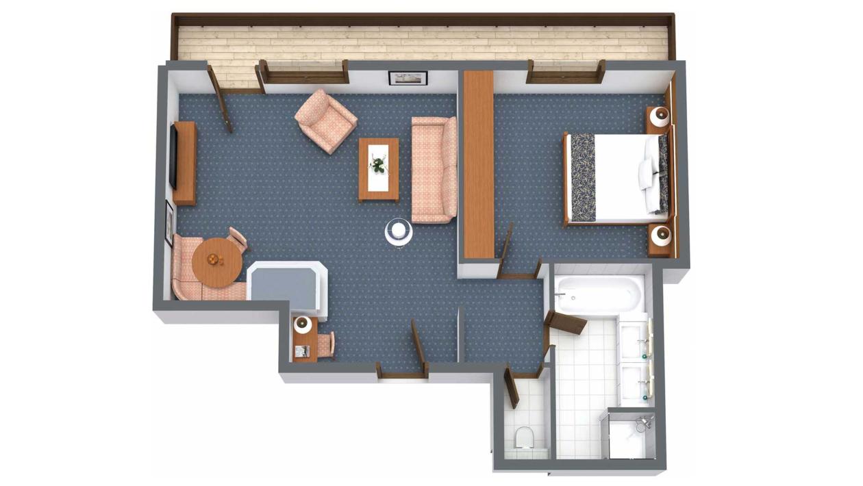 Suite mit Schlafzimmer, Wohnzimmer, Dusche und Badewanne, Doppelwaschbecken, separatem WC, Balkon, Radio, Sat-TV, WLAN, Telefon, Kosmetikspiegel, Föhn, Zimmersafe und Minibar
